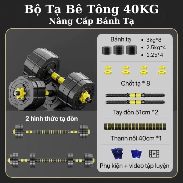 🏋️♂️ Bộ Tạ Đa Năng KINGBOX 20KG – 30KG – 40KG Bê Tông Bọc Nhựa Cao Cấp | Giải Pháp Tập Luyện Tại Nhà Hiệu Quả