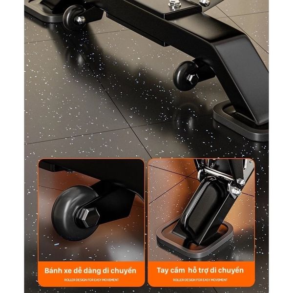 Hỗ trợ tập tạ đơn, tạ đòn, gập bụng.