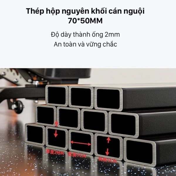 Khung thép hộp nguyên khối dày 2mm, khả năng chịu tải cực lớn.