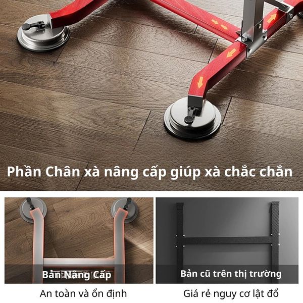 Chân đế được thiết kế choãi rộng (113x114cm) kết hợp giác hút chân không giúp bám chặt xuống sàn nhà, chống lật đổ nguy hiểm.