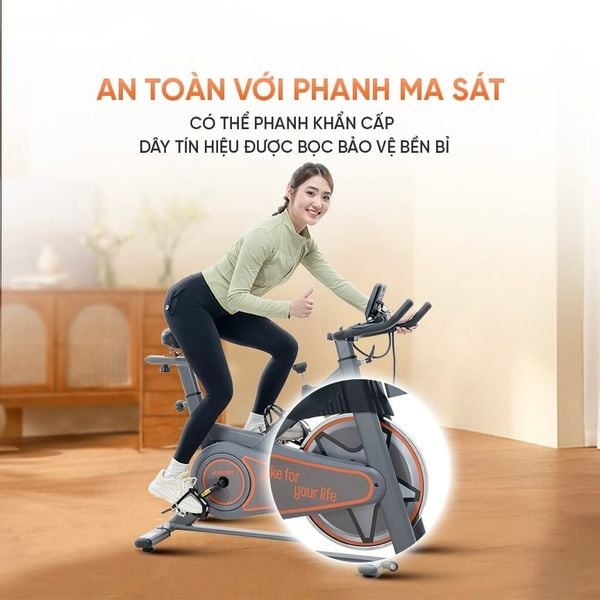 Phanh ma sát + dừng khẩn: an toàn khi tăng tốc/cường độ cao.